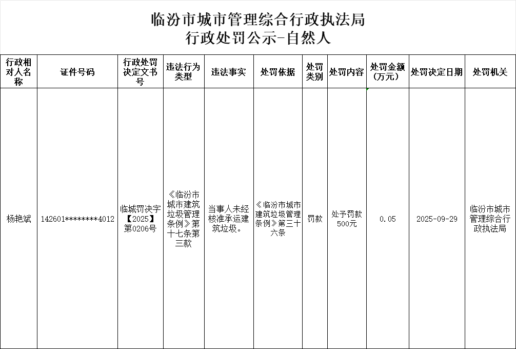 行政处罚公示-杨艳斌