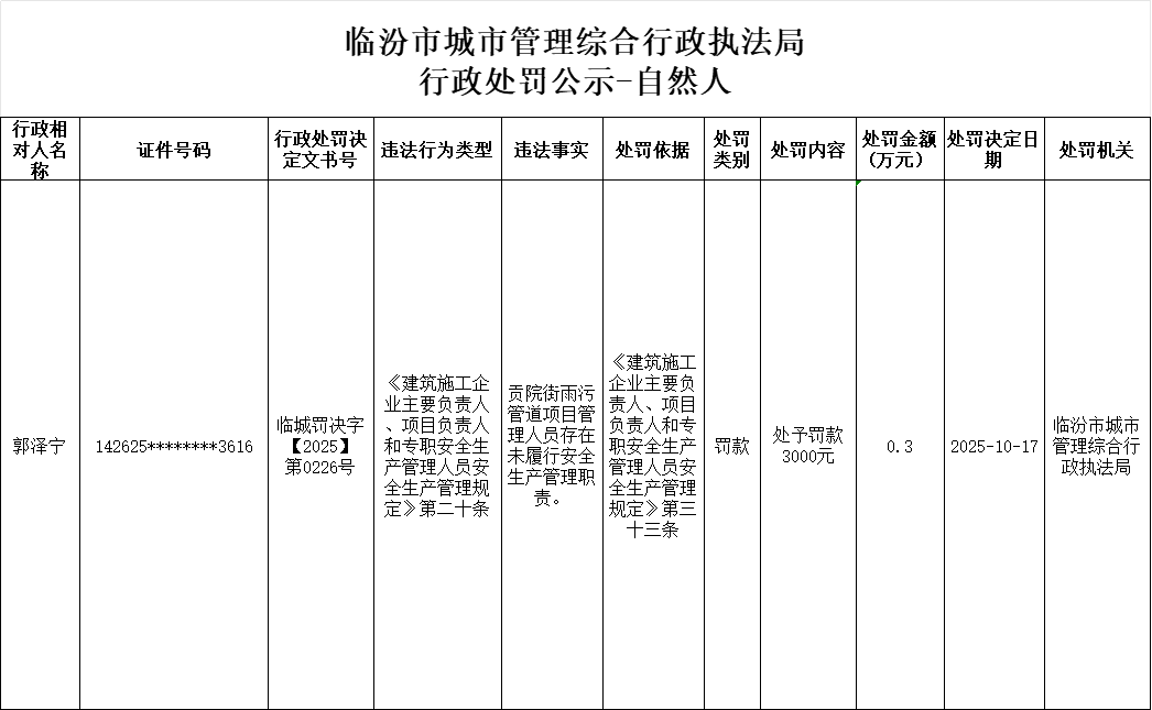 行政处罚公示-郭泽宁