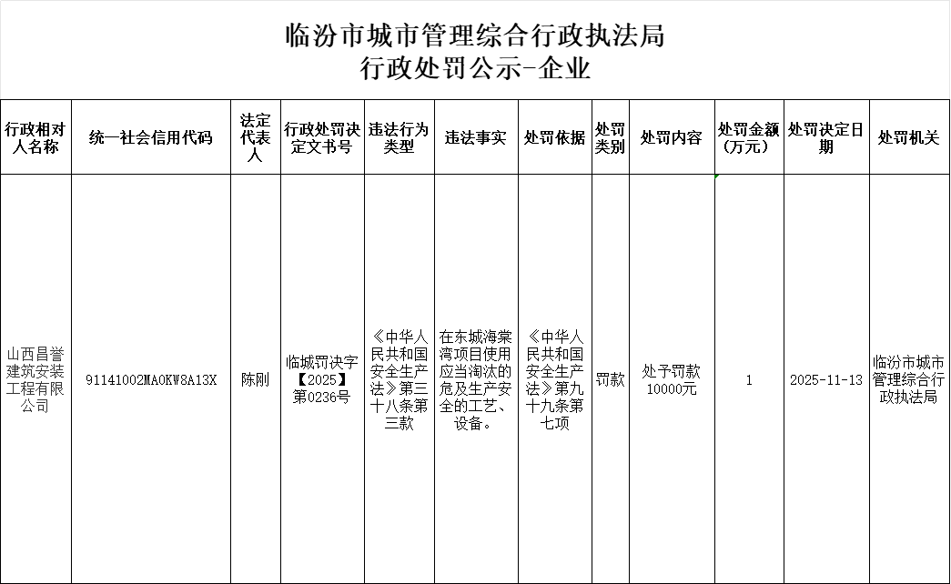行政处罚公示-山西昌誉建筑安装工程有限公司