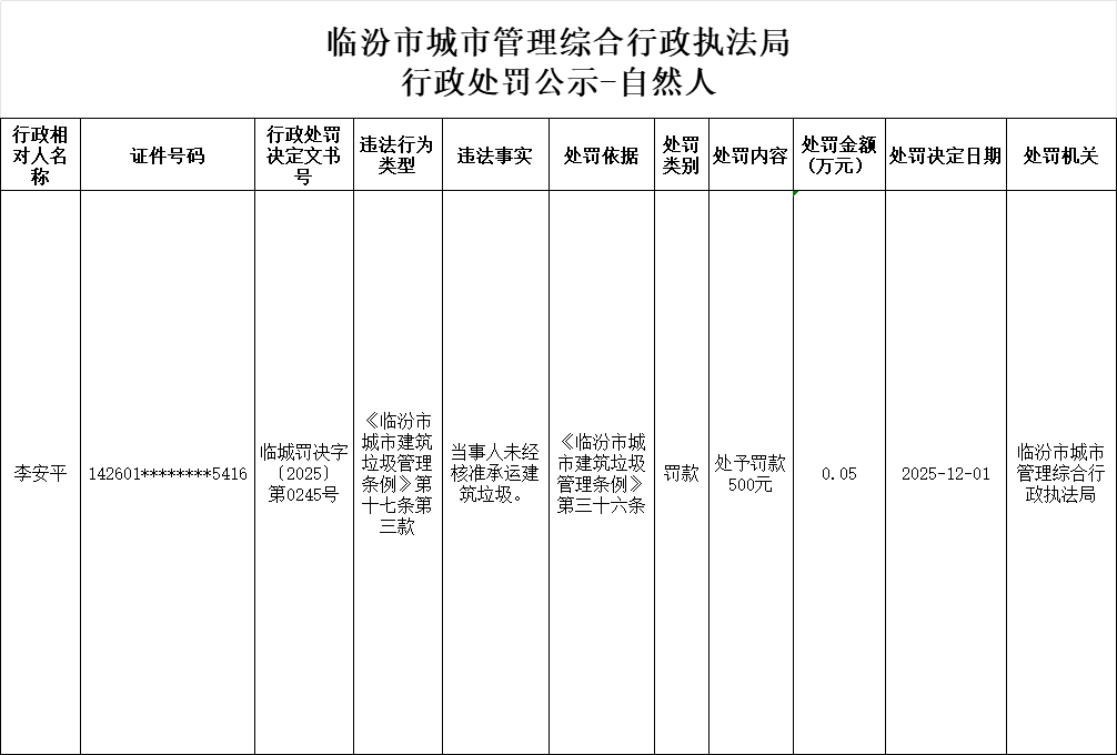 行政处罚公示-李安平
